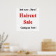 Something for everyone offers customised personalised haircut sale poster especially designed to promote and market your business. This uniquely designed haircut sale poster will not only bring a smile to your clients but they will also enjoy telling their friends about it. As a licensed cosmetologist I know firsthand the importance of promoting a salon, therefore it is wise to continuously change and market your shop as your clients’ needs increase. Happy promoting everyone…Good luck!