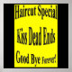 Something for everyone offers customised personalised haircut sale poster especially designed to promote and market your business. This uniquely designed haircut sale poster will not only bring a smile to your clients but they will also enjoy telling their friends about it. As a licensed cosmetologist I know firsthand the importance of promoting a salon, therefore it is wise to continuously change and market your shop as your clients’ needs increase. Happy promoting everyone…Good luck!