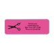 Hairdresser return address labels for hair stylist. Elegant labels with professional barber scissors logo. Hairstylist design with business name or company slogan Customisable background colour. Also great for beauty salon, spa, beautician etc. Neon pink and black or custom background colour.