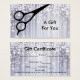 A gorgeous, glamourous business card gift certificate featuring tons of silver sparkles with a large, black silhouette of a pair of scissors/shears. Perfect for hair stylists, hairstylists, hair dressers, cosmetologists, cosmetology, salons and more!