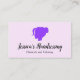 A chic, modern business card design made for hairstylists, colorists, and salon owners. Set on a soft lavender background, it features a sleek purple hair silhouette icon paired with an elegant script name and clean, professional subtext—perfect for showcasing services like hairstyling, coloring, cuts, and more. The overall look is feminine, polished, and easy to read at a glance.
