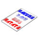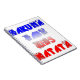 The design features the beloved Swahili phrase "HAKUNA MATATA" (No Worries) broken into four expressive lines. The words are rendered in bold, contrasting colours—striking blue, fading blue/lavender, and vivid red/pink—with each letter embellished by tiny starbursts and stars. These colours deliberately evoke the patriotic spirit of the French flag (blue, white/light, red), offering a fun, international twist on the African phrase. This bright, happy motif is ideal for celebrating childhood, joy, and a carefree attitude.