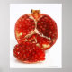 Asset ID: 119599880 / Rosemary Calvert / Half a ripe pomegranate cut to expose the juicy fruits inside with a clump of ripe fruits in the foreground, on a white plate with a white background.