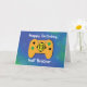 This card is great fun and good quality. I loved the humour inside and on the back. There is the opportunity to change the orientation of this card from landscape to portrait, which I did. It is relatively straightforward to amend the typeface to fit the new orientation. It was well packaged with no plastic. The printing on this card is excellent.