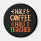 Funny coffee design for the teacher who loves their coffee, features a coffee bean and text that reads Half Coffee Half Teacher! Teacher coffee design mugs, stickers, bags, pillows, T-shirts, and more!