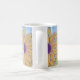 Simply beautiful is this over-sized half flower painted with gold petals and purple-dotted centre, presenting a most interesting design for a "good morning" cup of your favourite beverage, a mixed media work of art.