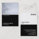A business card template design with a white edged black lower half. The front design includes a photo or artwork in the top half. The same theme is repeated on the back without the image, allowing room for other details and further customisation. The three squares motif used as a decorative feature on the back is from one of Zazzle's useful picture fonts and can be used as a decorative feature or replaced with your own logo or decoration.