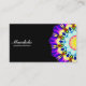 A business card with an attractive half kaleidoscopic mandala motif. Business name etc on the front with other details on the reverse with a variation on the same motif.