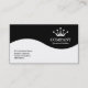 A business card with a bold wave design. Company name and business type or slogan in the header along with a decorative crown logo/symbol, which can be used as a decorative feature or replaced with your own logo. Address details on the front. Name and other details on the back. Suitable for many types of business.