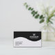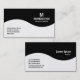 A business card with a bold wave design. Company name and business type or slogan in the header along with a monogram which can of course be changed or alternatively replaced with your logo or even a decorative symbol. Address details on the front. Name and other details on the back. Suitable for many types of business.