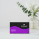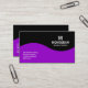 A business card with a bold wave design. Company name and business type or slogan in the header along with a monogram which can of course be changed or alternatively replaced with your logo or even a decorative symbol. Address details on the front. Name and other details on the back. Suitable for many types of business.