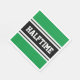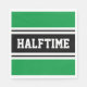 This sporty, athletic design features bold HALFTIME text inside a highlighted wide black stripe with double white racing stripes against bright green background. The text in this design can be personalised.