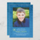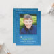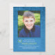 A handsome blue on blue photo invitation with a cross that can be dragged to any location, made larger or smaller or eliminated.