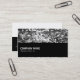 A clear stylish modern business/profile card template with an image or artwork in the top half and a black bottom half. The image in the front top half can also be changed. The reverse side has the same black half footer with a white or light colour top half. Company name, etc on the front with name and other contact details arranged on the back. This card can be customised in a variety of ways.