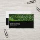 A clear stylish modern business/profile card template with an image or artwork in the top half and a black bottom half. The image in the front top half can also be changed. The reverse side has the same black half footer with a white or light colour top half. Company name, etc on the front with name and other contact details arranged on the back. This card can be customised in a variety of ways.