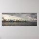 A panoramic view of the Halifax waterfront taken from a boat in the Halifax Harbour. The John A. MacDonald bridge is also featured, as well as a dramatic sky. Location is Halifax, Nova Scotia, Canada.