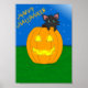 Hallow Kitty Happy Halloween Poster with happy pumpkin jack-o-lantern and cute black kitty cat peaking over the top.