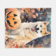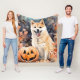 Halloween Akita With Pumpkins Scary Fleece Blanket
