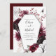 Halloween October 31st Autumn Fall Dark Watercolor Burgundy Wedding Invitations on Black background - includes haunting and scary elegant script typography with modern Flowers and Bat Wings for the special Creepy Wedding day celebration.