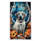 Get your furry friend ready for a howling good time with this adorable dog-inspired Halloween design! Featuring a spooky dog with pumpkins, this design is perfect for pet parents who want to include their four-legged family