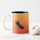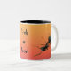 This Halloween mug features a whimsical design of two larger than life ants dancing across a colourful surface of orange, gold and purple. The text reads: Trick or Treat. It can be customised or removed.
