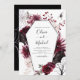 Halloween October 31st Autumn Fall Dark Watercolor Burgundy Wedding Invitations on Black background - includes haunting and scary elegant script typography with modern Flowers and Bat Wings for the special Creepy Wedding day celebration.
