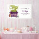 Cute halloween theme baby shower welcome banner featuring illustration of a purple cauldron with green smoke coming out of it. There is witch's potion and candles around. The text says "a baby is brewing." Perfect for an October or fall shower.
