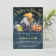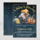 Halloween cute baby ghost pumpkin brewing pot baby shower template invitation instant download. A cute baby pumpkin ghost with a cat candle, mushroom and a huge pot watercolor candy candles on a dark starry night background for Halloween themed baby shower.