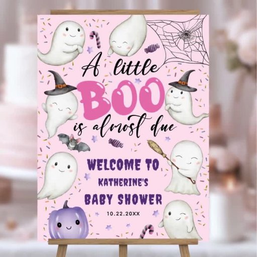 Halloween Baby Shower Girl Pink Little Boo Designed by H-Art Studio Design