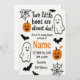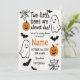 Spooky and cute Halloween-themed baby shower invitation for twins. Features playful ghosts, pumpkins, bats, and spider webs in a fun and festive design. Perfect for celebrating your little boos with family and friends. Easy to customise with name, date, time, and location. Great for digital download and printable use.