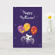 This kawaii bat skeleton flies through the starry Halloween night sky with aid from jack-o-lantern face balloons. Designed by Kaz Foxsen.