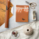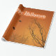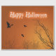 A Halloween silhouette illustration featuring spooky black bats and creepy trees with a drippy "Happy Halloween" Greeting on a mystic orange background.
