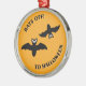 Cute little bats wishing a happy 'bats off to Halloween' in this festive digital illustration.