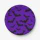 These colourful and fun paper plates feature a purple background with flying black bats. Easily personalise them by clicking the Customise It button to make them one-of-a-kind Halloween party plates!