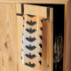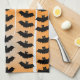 Fun kitchen towel for Halloween with my design of flying black bats on an orange and white background.