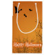 A silhouette Halloween illustration: Spooky black bats and creepy trees with a drippy "Happy Halloween" Greeting on a mystic background.