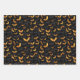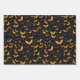 These wrapping paper sheets are shown in a festive Halloween bats print design.