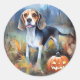Halloween Beagle With Pumpkins Scary Classic Round Sticker