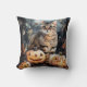 Halloween Bengal Cat With Pumpkins Scary Cushion