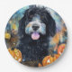 Halloween Bernedoodle With Pumpkins Scary Paper Plate