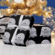 Cute Halloween birthday ghosts wrapping paper- Black background, (which may be changed to any colour), with cute ghosts with big eyes pattern.