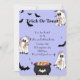 halloween birthday party invitation with ghosts, bats, pumpkins, trick or treat