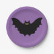 Paper Plate printed with Black Bat artwork design image by TheFabricSeal at Zazzle is a cute and simple lone black bat with background colours of Halloween Orange and Halloween Purple illustration drawing silhouette style with peekaboo peering khaki green and pumpkin orange eyes looking out for friends and prey alike and a cool dark Halloween night of adventure, goblins, ghouls and ghosts.