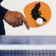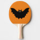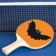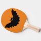 Ping Pong Paddle printed with Halloween Black Bat artwork design image by TheFabricSeal at Zazzle.com is a cute and simple lone black bat illustration art drawing silhouette style with peekaboo peering khaki green and pumpkin orange eyes looking out for friends and prey alike and a cool dark Halloween night of adventure, goblins, ghouls, and trick or treat sweets.