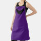 Purple Apron and casual attire apparel fashion statement accessory printed with Halloween Black Bat artwork design image by TheFabricSeal at Zazzle.com is a cute and simple lone black bat illustration art drawing silhouette style with peekaboo peering khaki green and pumpkin orange eyes looking out for friends and prey alike and a cool dark Halloween night of adventure, goblins, ghouls, and trick or treat sweets.