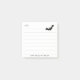 These Halloween sticky notes were designed with a simple graphic black bat flying in the upper right corner. The word, "Note:" is in the upper left. There are faded lines in the white background. Your name will be printed on the bottom.