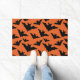 Cool, fun and unique Halloween home decor, gift idea for anyone. Halloween black flying bats spooky silhouette holiday pattern. Hallows Eve flock of black bats. You can customise orange colour.