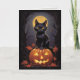 Cartoon from a black cat sitting on a pretty halloween pumpkin in the moonlight
