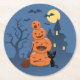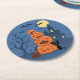 Halloween Black Cat and Pumpkins Round Paper Coaster