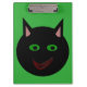 This awesome clipboard features a black cat with pointed ears, bright green eyes and a sly red grin. This creepy kitty is perfect for Halloween or for cat lovers.